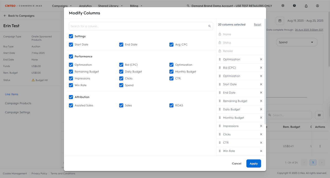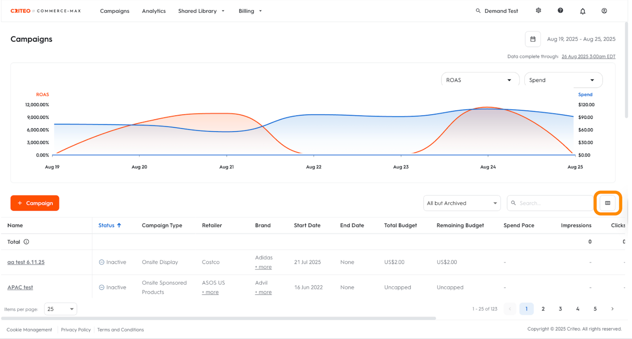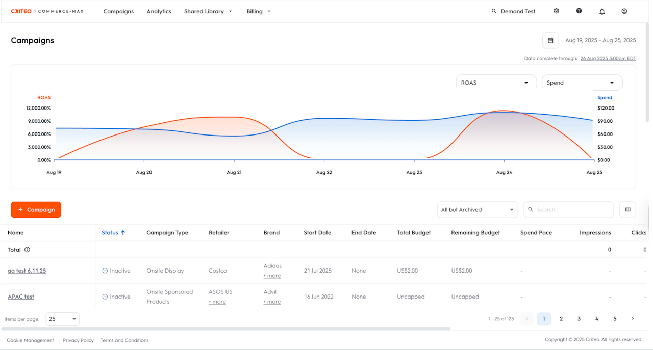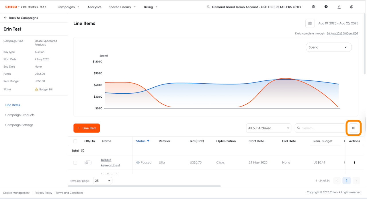 The Campaign & Line Item Dashboard is your central hub for tracking and analyzing campaign performance in Commerce Max. Whether you're reviewing results at the campaign level or drilling down into specific line items, these dashboards help you monitor key metrics, identify trends, and make informed optimization decisions.
