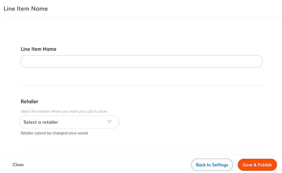 After naming the line item, choose the Retailer you want your ads to run on.