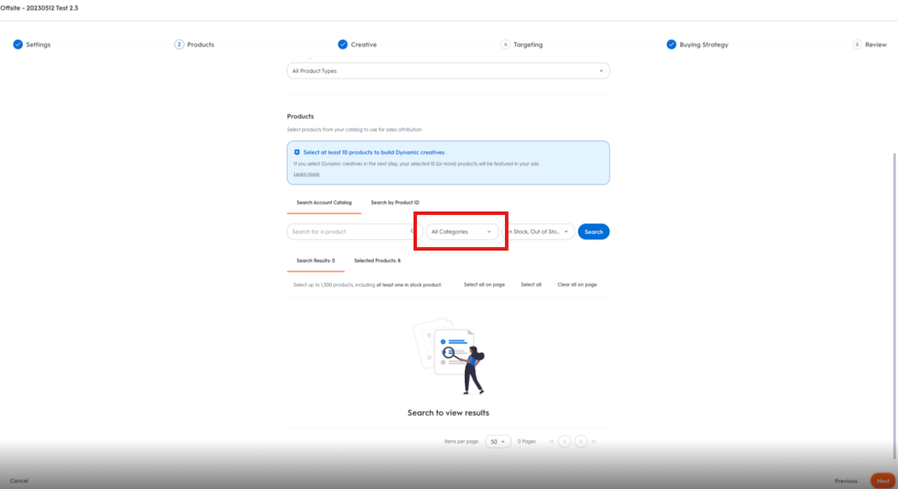 If you are having trouble finding a product, please reach out to your Criteo representative.